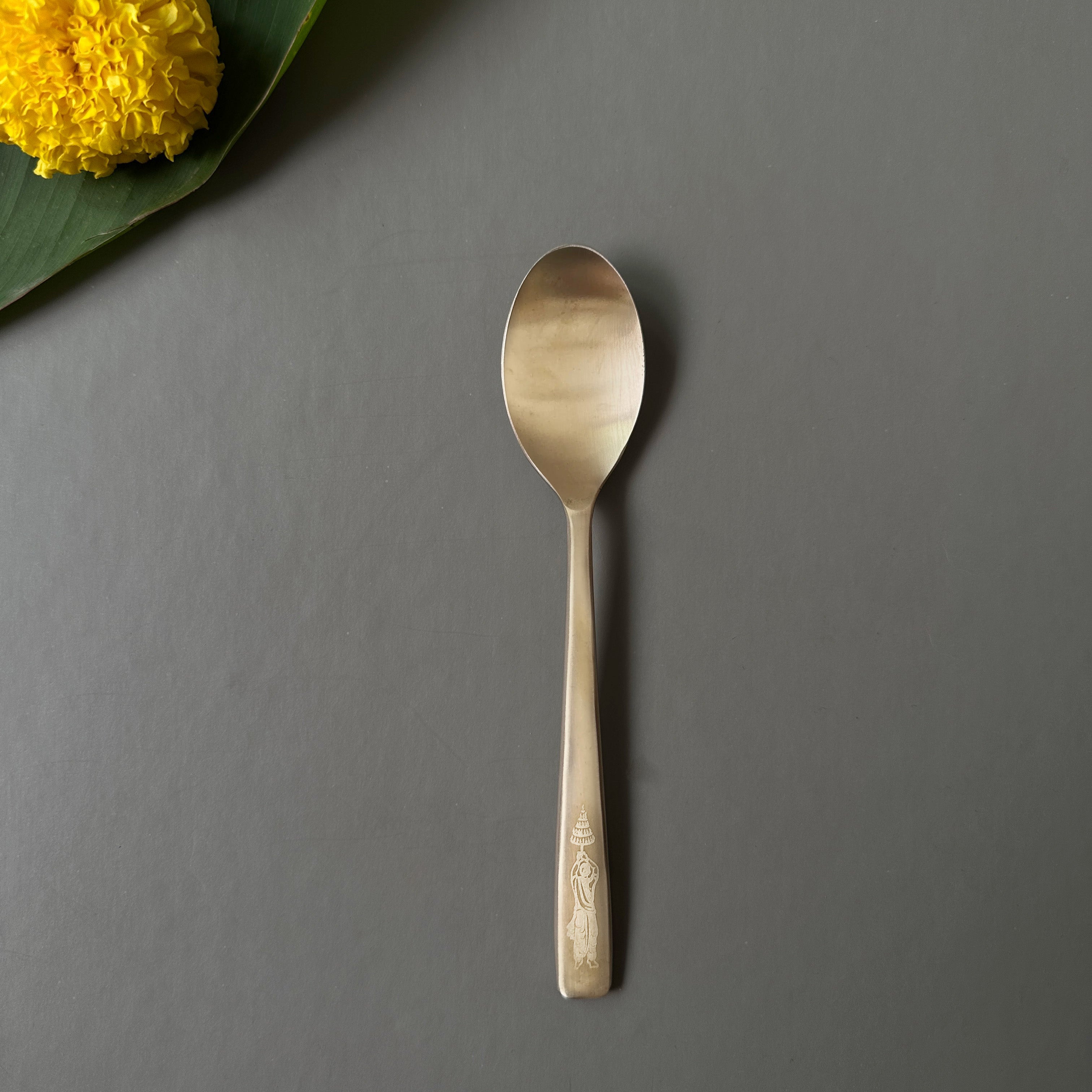 Our Kansa Collection is a fusion of tradition and innovation. Dessert Spoon has been crafted by skilled tribal artisans. Kansa is an alloy of 78% Copper and 22% tin and is celebrated for its remarkable attributes. Beyond its health benefits, Kansa's natural heat conductivity keeps food warm and flavours intact. Cherished since ancient times for its gut-friendly properties, Kansa has also found its place in Indian temples.