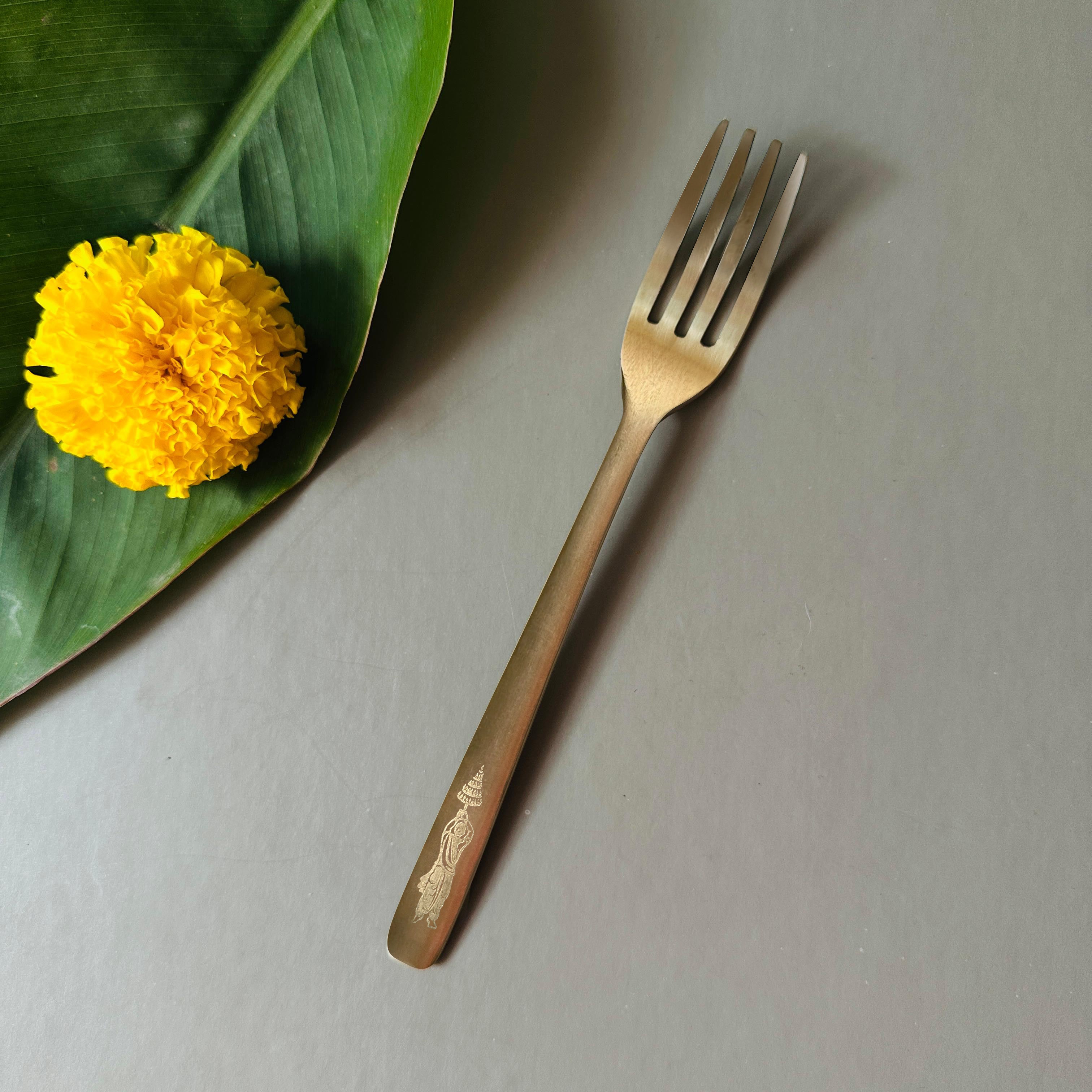 Our Kansa Collection is a fusion of tradition and innovation. Fork has been crafted by skilled tribal artisans. Kansa is an alloy of 78% Copper and 22% tin and is celebrated for its remarkable attributes. Beyond its health benefits, Kansa's natural heat conductivity keeps food warm and flavours intact. Cherished since ancient times for its gut-friendly properties, Kansa has also found its place in Indian temples.